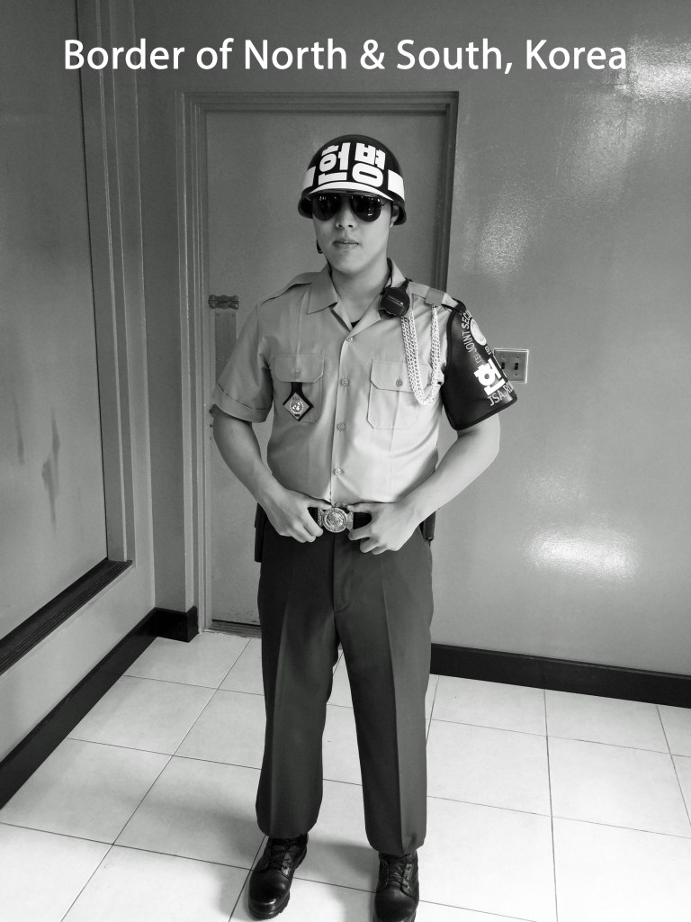 I wanted to see the border between South & North Korea. The demilitarized zone (DMZ) is a strip of land between the two countries to act as a buffer. The Joint Security Area (JSA) is the only portion of the Korean Demilitarized Zone (DMZ) where North and South Korean forces stand face-to-face. North Korea is behind the door being guarded by the soldier.