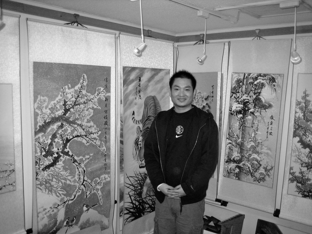 This is the art gimmick in Beijing. Several hundred alleged U.S.-bound students on the streets, all using this line to suck you into their shop. Few will every attend an American university. And I fall for it each time.
